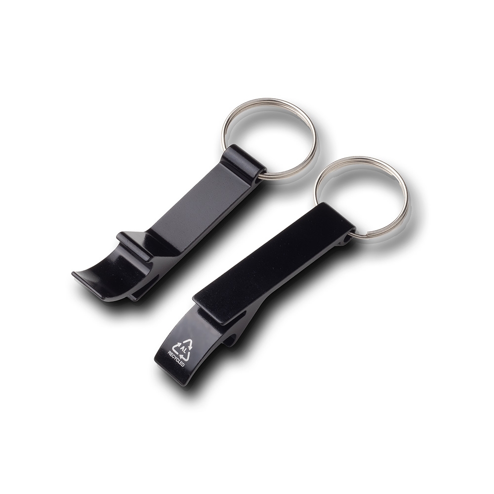 Descrição: Kit composto por uma caneta e um chaveiro abridor, ambos fabricados em alumínio reciclado. O abridor possui formato de pé de galinha, próprio para abrir tampas de garrafas. A caneta tem corpo sextavado com régua impressa em uma das faces, acionamento por clique e ponteira touch emborrachada para uso em dispositivos touchscreen, além de carga esferográfica azul de 1,0 mm. Acompanha estojo de papelão com berço de espuma revestido em tecido aveludado.
